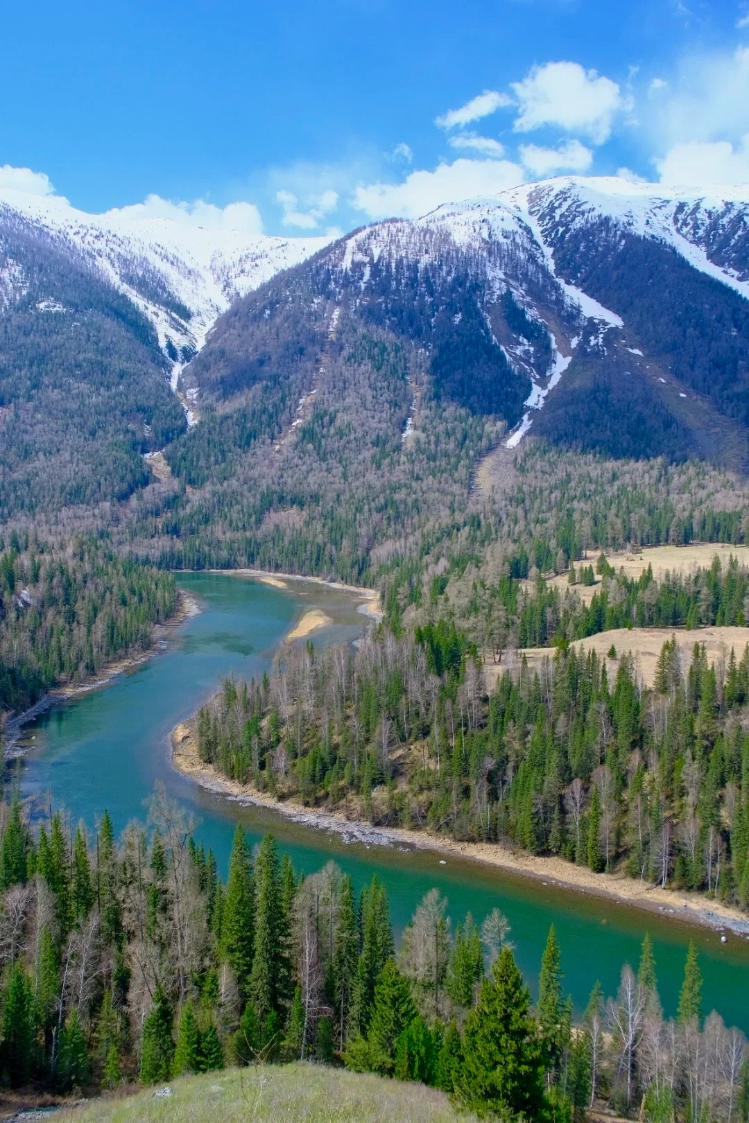喀纳斯 观鱼台风景 三湾:(由南向北依次为:卧龙湾、月亮湾、神仙湾),三湾之间有区间车站,每两个湾之间步行时长为 50 分钟,如果全程步行大概 6 公里。小红书博主说(5月1日)神仙湾景色最好,月亮湾的水还没有绿,还是黄黄的。这里我另外选取其他几个博主的徒步路线以供参考: